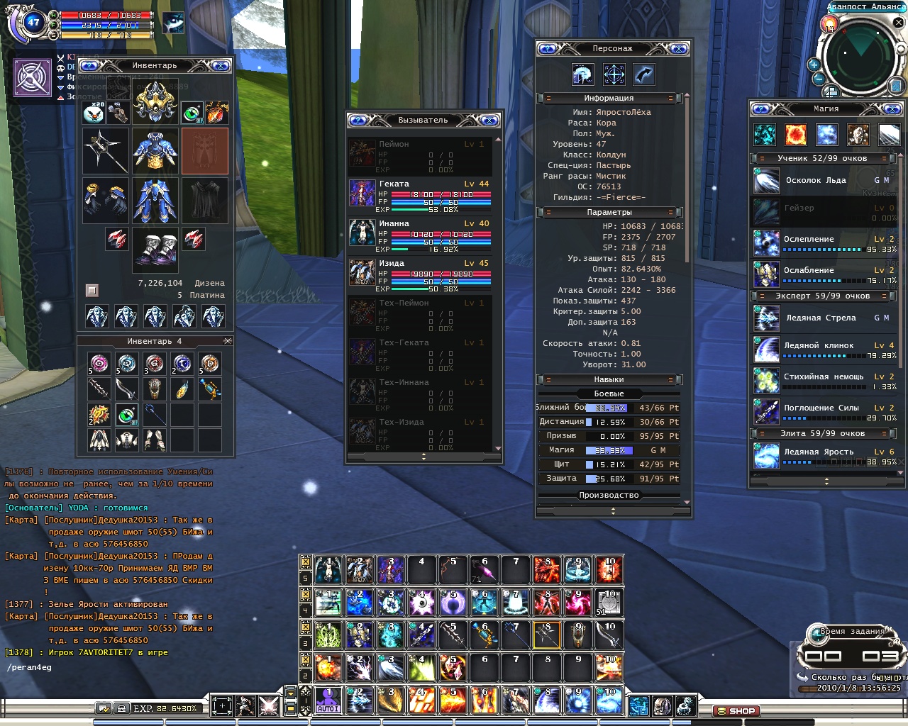 | 1. ЯпростоЛёха 2. Пастырь 3. 47(19% до 48) 4. прикреплено 5. Нет ето 3 перс но основной 6. Да играл раньше за Акров а теперь понравились Коры 7. Во первых я хочу вступить в дружный клан там где все стоят друг за друга, найти новых друзей в игре! 8. Я точно сказать не могу но я играю примерно с 16.00 до 22.00 9. Бесплатный 10. Хочу проявить себя в командной игре и помагать гильдии чем смогу по мере поступленее прозьб в мою сторону) 11. peran4eg 12. Ventrillo нет( 13. 81к 14. Устав прочитал и полностью согласен! 15. Обязуюсь 16. Принцыпы простые: поступать чесно наказывать нарушителей порядка таких как кидалы,неодекваты и других (на деньги,анимусов, оружие...) ! От игры ищу общенее с интересными людьми и достижение достижение нормальных лвл и помощь сокланам которые её будут просить! ну и конешно сокращение времини играя в приятную игру!) О себе ничего сказать немогу я себя оценить не в силах, лучше ето сделаете вы играя в месте! Реал: 1.Александр 2.18 лет 3.Украина, Киев