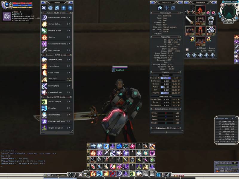 | Сорь ,,, тока щас заметил , то что на скрине с боку (по мимо графы персонажа) кол-во ОС не видно вот исправил ,,, ну и добавил данные о магии и ДБ :